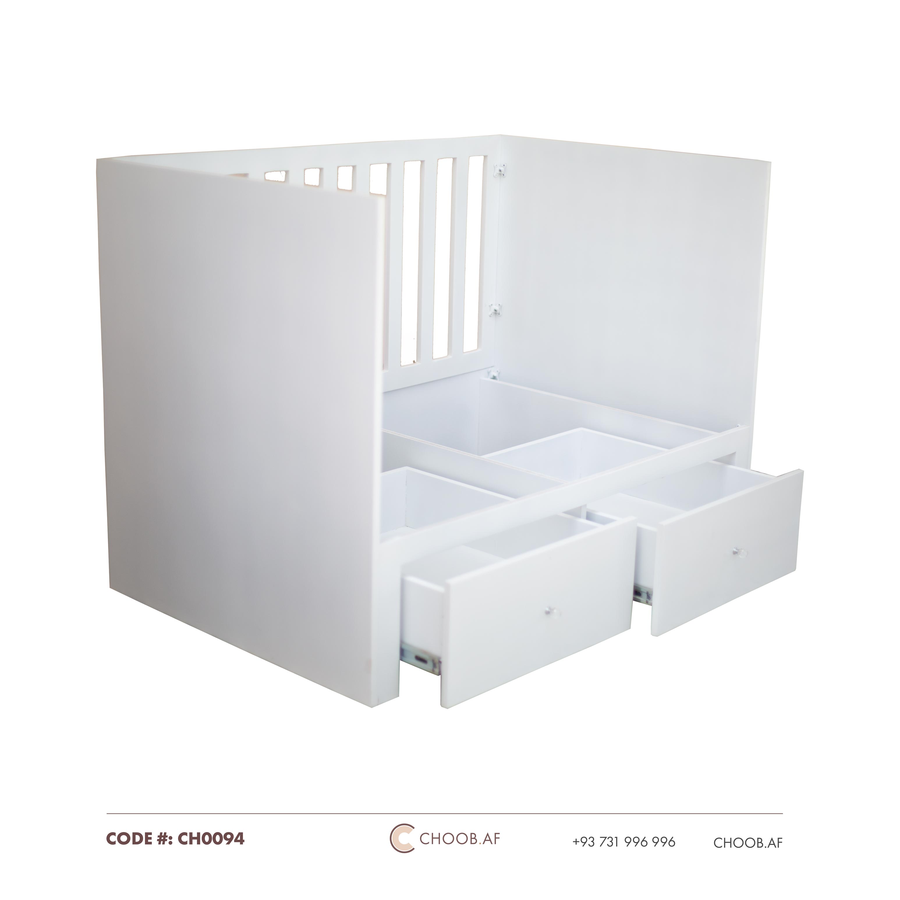 The Structure and all Parts are made of Malaysian Panels inside and outside. The Baby Crib also includes two drawers.