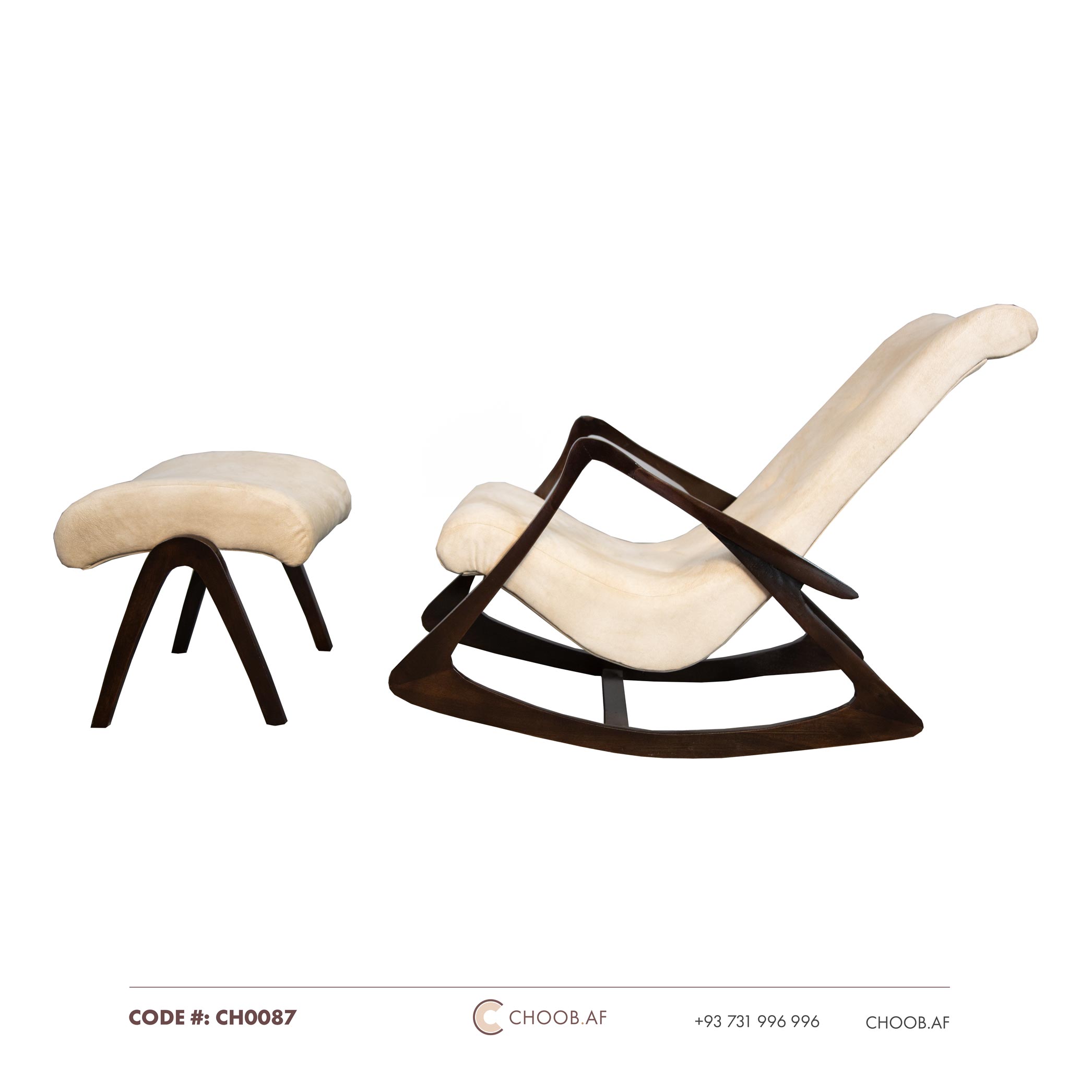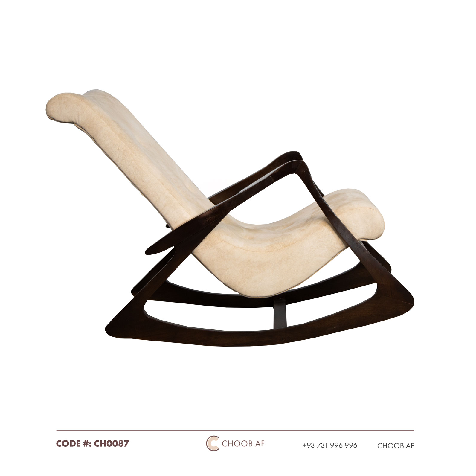 To make this Rocking Chair we have used best quality Walnut Wood and 35 KG sponge for the seater and for the backseater with high-quality Fabric + Leather.